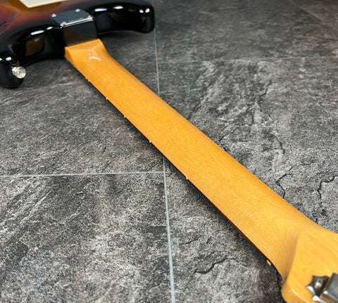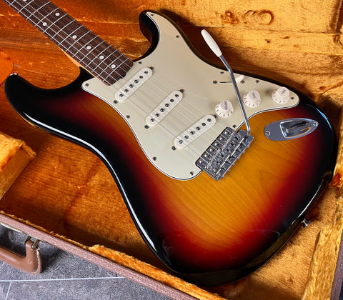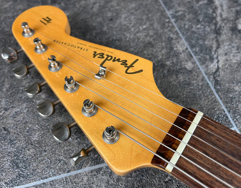 A fantastic example of a 2006 AVRI '62 Stratocaster. Superb condition for an instrument approaching twenty years old. One chip to the super thin nitro finish, as visible in the photographs. Otherwise just some very light scratches to the body and light pick marks to the guard. Frets show no wear. All original, still fitted with its factory 3 way switch, although the extra 5 way is also included. Supplied in its original tweed case with a full compliment of case candy.